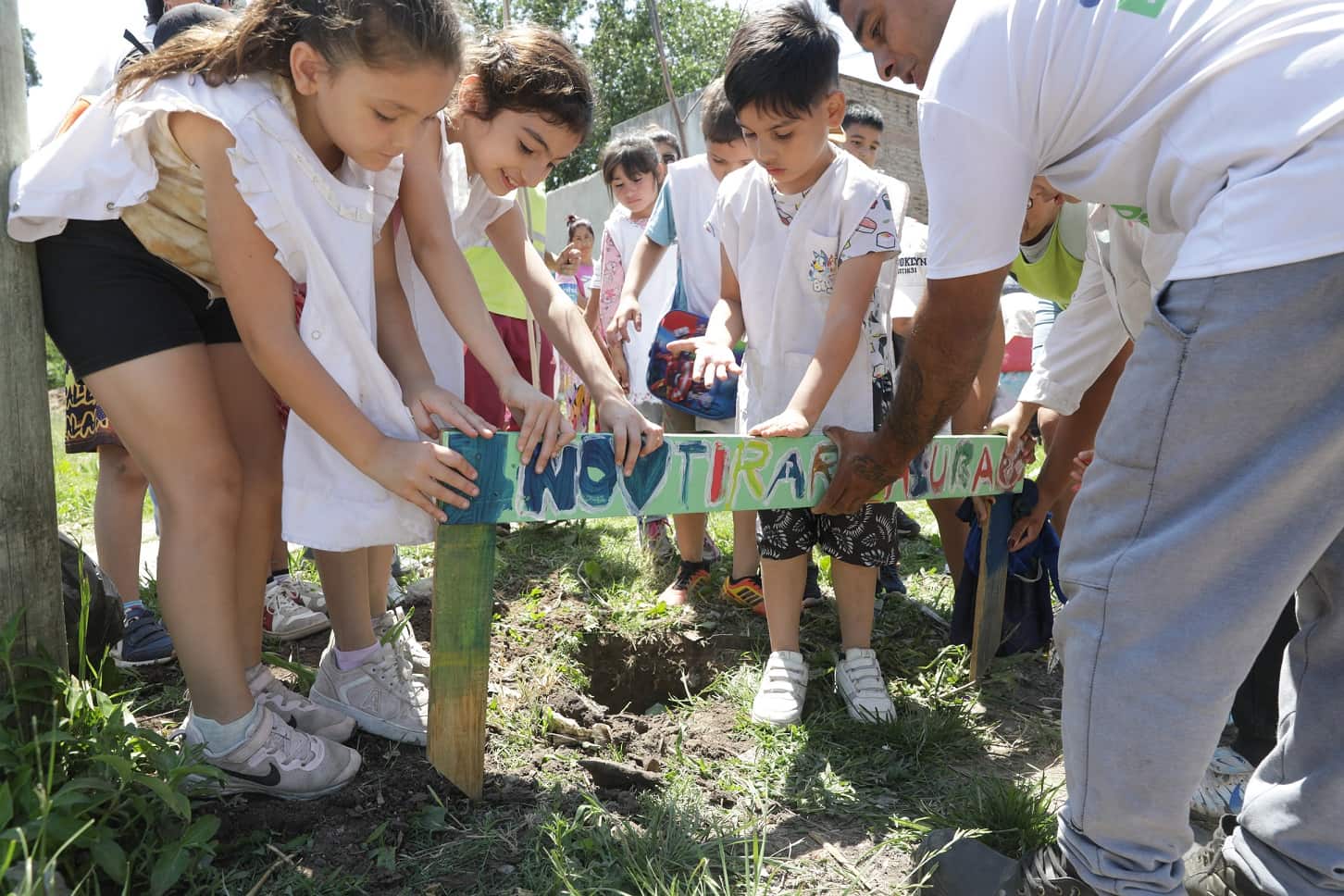 Además de las tareas de pintura en paredes, se realizaron acciones orientadas a la educación ambiental, con un taller de intervención artística donde se crearon carteles con consignas de cuidado para los árboles; acciones de sensibilización para fomentar el respeto y el cuidado del espacio público; y se llevó adelante la plantación de especies nativas, para continuar llenando de verde el distrito.